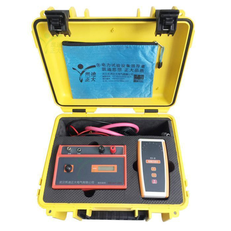 KD-214A 電纜識別儀由電纜識別發射機,電纜識別接收機、發射卡鉗和接收卡鉗及輸出信號連接線組成。它具有大功率電流脈沖輸出;現場接收信號特征清晰,輕便靈活,靈敏度高,能有效抑制現場工頻干擾;判斷準確、快速;保護電路可靠,不怕輸出短路;柔性大鉗口ф125適合各種截面積的動力電纜;內部具有大功率隔離變壓器,操作者與市電不存在電氣上的直接接觸。很大的保證了人身安全。