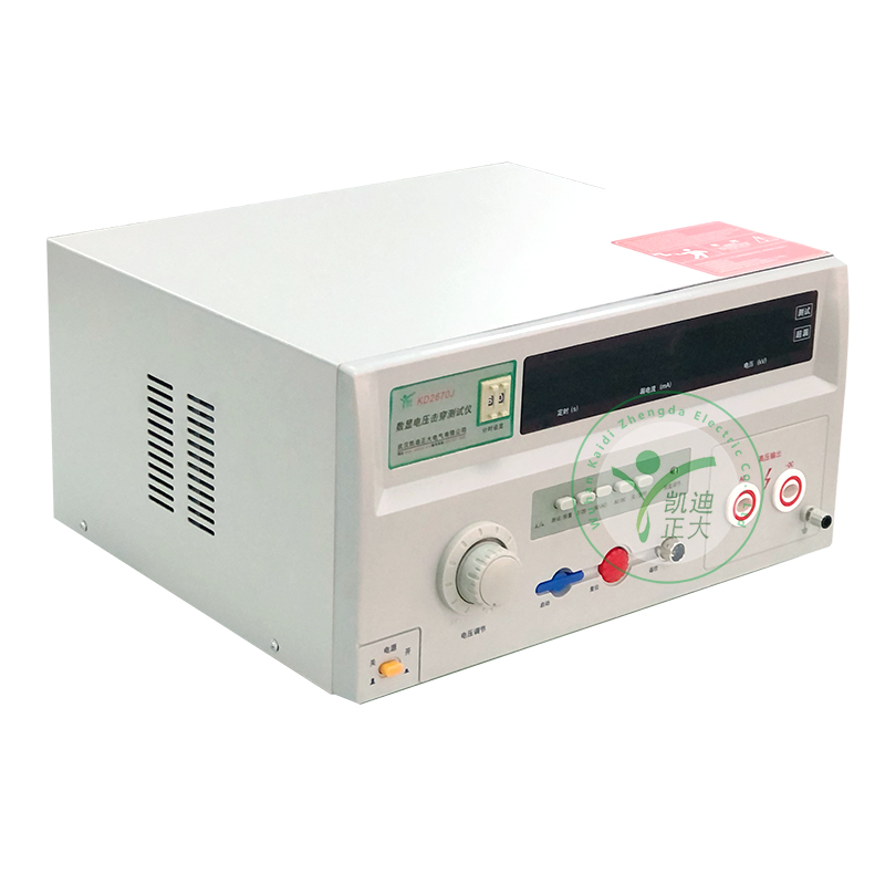 KD2670J數顯電壓擊穿測試儀是在吸收、消化國內外耐壓測試儀的基礎上,結合眾多用戶的實際使用情況加以提高、完善設計而成的。測試電壓、漏電流同時顯示,功能豐富實用,可通過漏電流顯示反映被測體漏電流的實際值和比較同類產品不同批次或不同廠家產品中的耐壓好壞程度,確保你的產品安全性能,同時可利用漏電流顯示功能,擴展測量高壓硅堆的反向電壓、反向漏電流、三極管的高反壓管的反向電壓、反向漏電流等,技術性能和質量可靠。