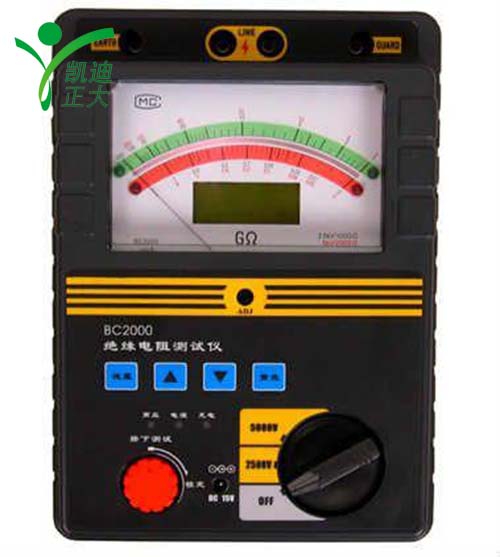 絕緣電阻測試儀是用來測量設備絕緣電阻的專用儀器。按其結構可分為手搖式,晶體管式和數字式;按其電壓等級一般有:100,250,500,1000,2500,5000v和10000v幾種形式,可以根據被試設備的電壓等級進行選用。