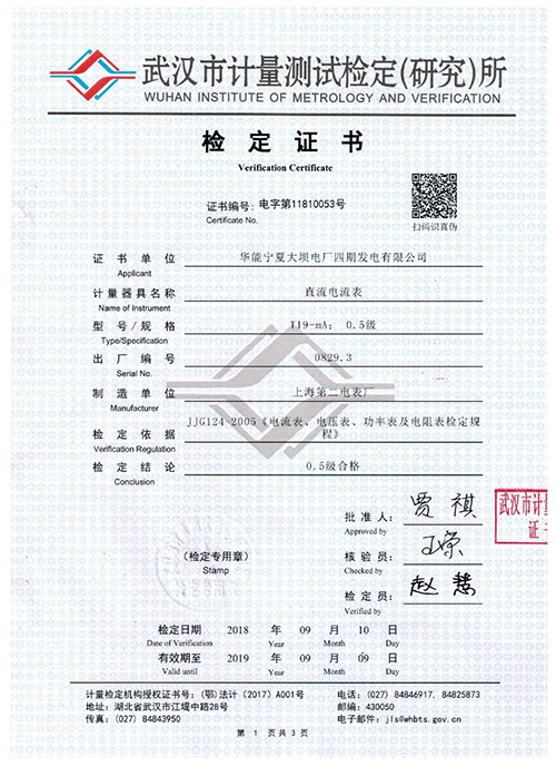 武漢凱迪正大T19-mA直流電流表校準證書