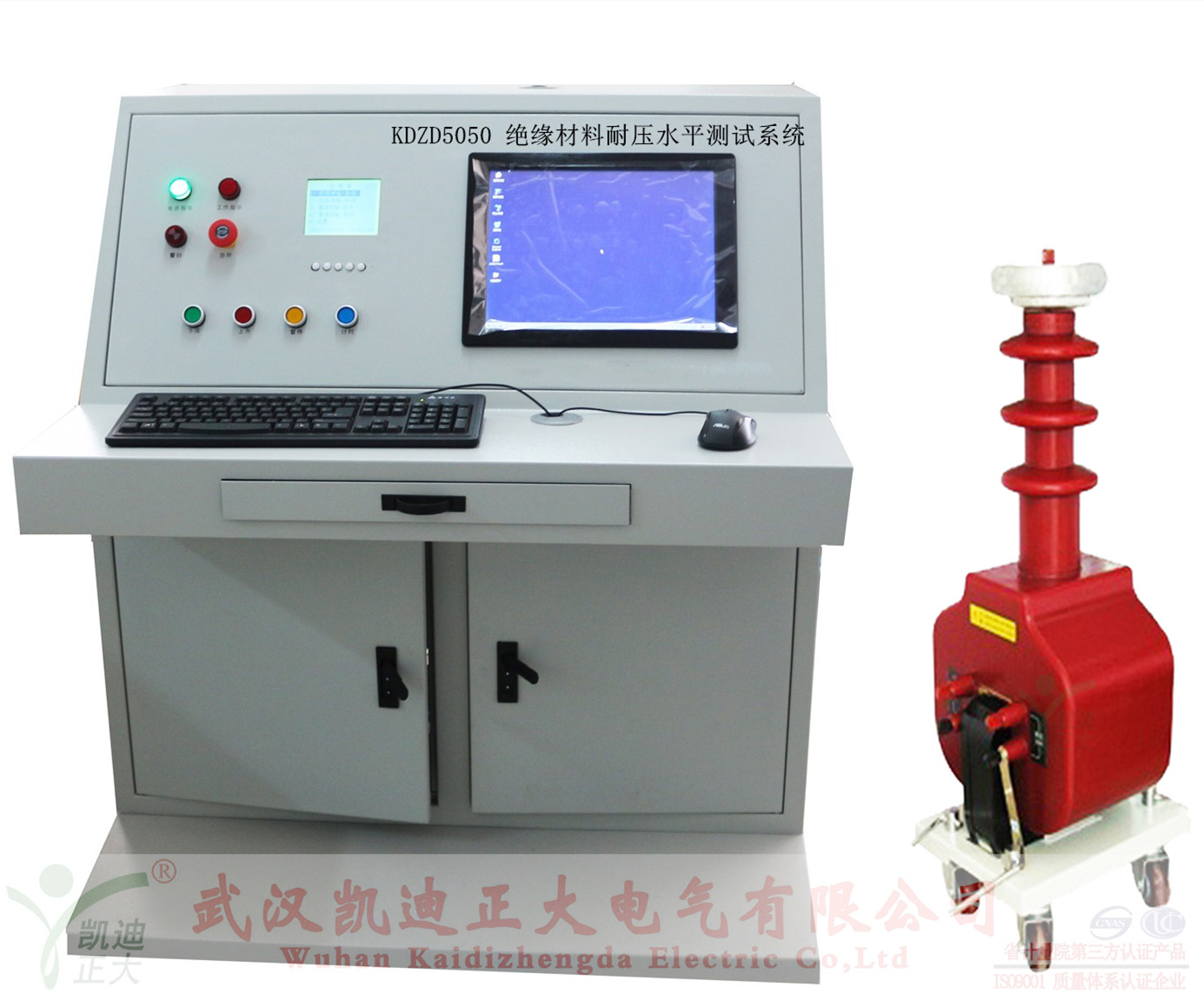 工頻交流耐壓試驗裝置是最基本的試驗設備。用于對各種電器產品、電氣元件、絕緣材料等進行規定電壓下的絕緣強度試驗,以考核產品的絕緣水平,發現被試品的絕緣缺陷,衡量過電壓的能力。它由高壓試驗變壓器、電動控制臺、柱式調壓器等組成。下面就各個部分的使用加以說明。KDZD5050 絕緣材料耐壓水平測試系統符合《GB/T17622-2008帶電作業用絕緣手套》、《DLT676-2012帶電作業用絕緣鞋(靴)通用技術條件》、《電力安全工器具預防性試驗規程》等標準。