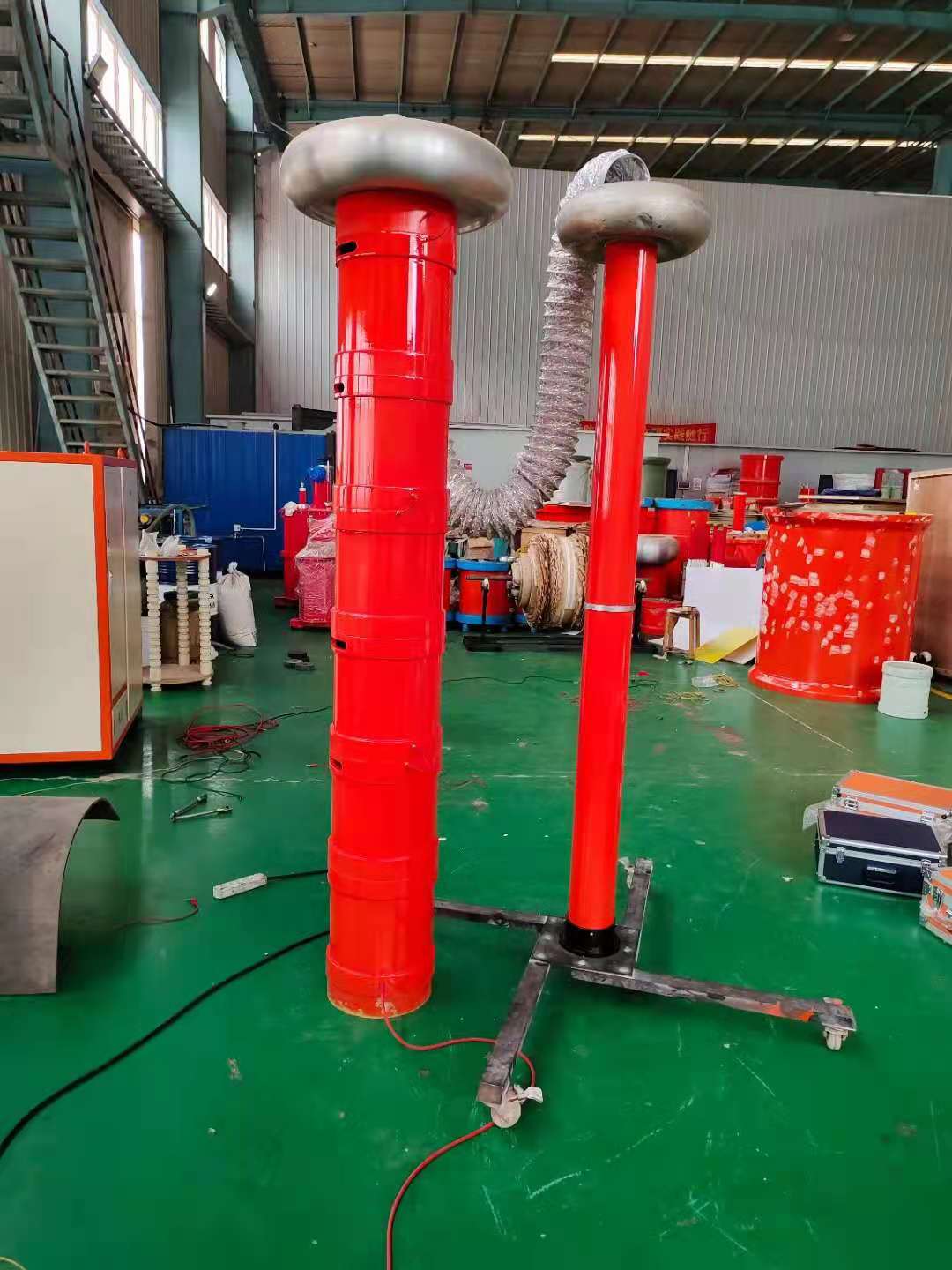 這次采購的KDXZ-II串聯(lián)諧振耐壓試驗裝置(270kvA270KV)用于110kV主變、開關(guān)GIS、發(fā)電機、互感器、電纜及絕緣子等電氣設(shè)備交流耐壓試驗。采用黃金比例分體式多節(jié)電抗器升壓方式。便攜式串聯(lián)和并聯(lián)操作升壓。額定輸出電壓:0~270kV及其以下;輸出頻率:30~300HZ;連續(xù)工作時間:60min諧振電壓波形畸變:≤1.0%