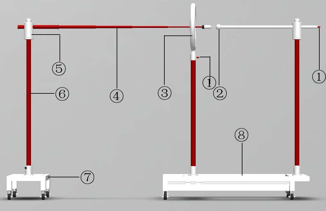 1.接線端子  2.均壓球  3.均壓環  4.驗電器  5.固定器  6.絕緣管  7.平車 8.帶導軌平車