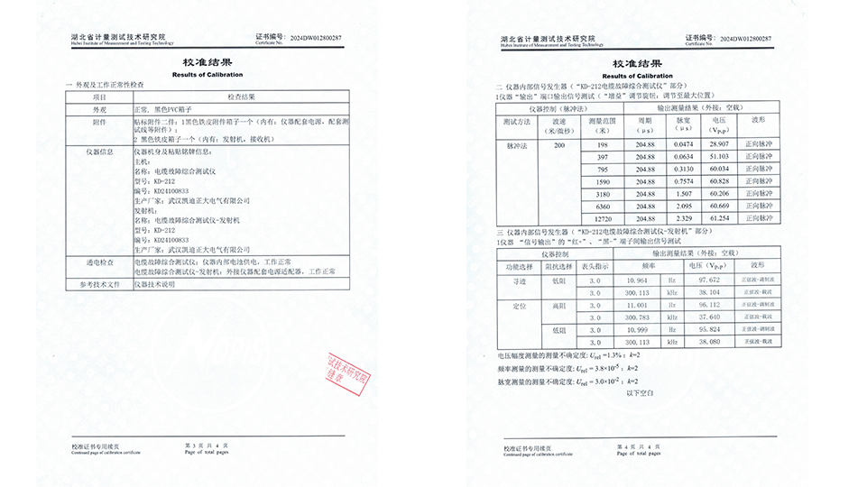 KD212電纜故障綜合測試儀嚴格遵循了JJG 840-2015《函數(shù)發(fā)生器》等相關(guān)校準標準,確保了測量結(jié)果的準確性和可靠性。在頻率測量方面,該測試儀覆蓋了從直流(DC)到500MHz的寬廣范圍,充分滿足了現(xiàn)代通信和電力系統(tǒng)中對高頻信號測試的需求。同時在電壓測量上,KD212也展現(xiàn)出了精度和穩(wěn)定性和優(yōu)勢,測量范圍可達(0.001~100)V,確保了在不同電壓等級下的電纜故障檢測都能得到準確無誤的結(jié)果。