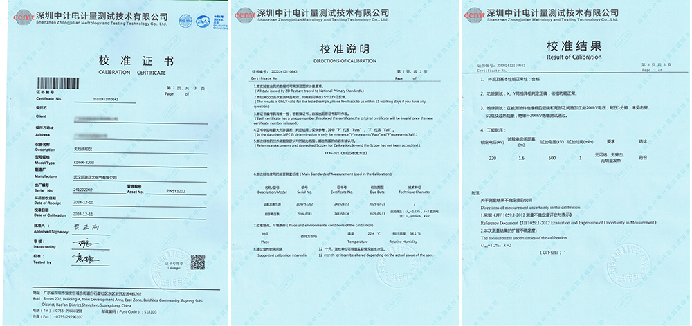 近日,廣東某能源發(fā)展有限公司訂購(gòu)我司的KDHX-3208無(wú)線核相儀順利通過(guò)了深圳中電計(jì)量測(cè)試技術(shù)有限公司的專業(yè)校準(zhǔn),獲得校準(zhǔn)證書。
