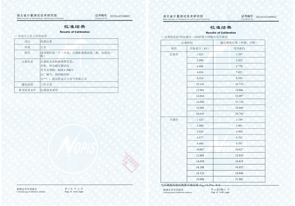 KDCJ-20kV沖擊耐壓測(cè)試儀通過(guò)校準(zhǔn)