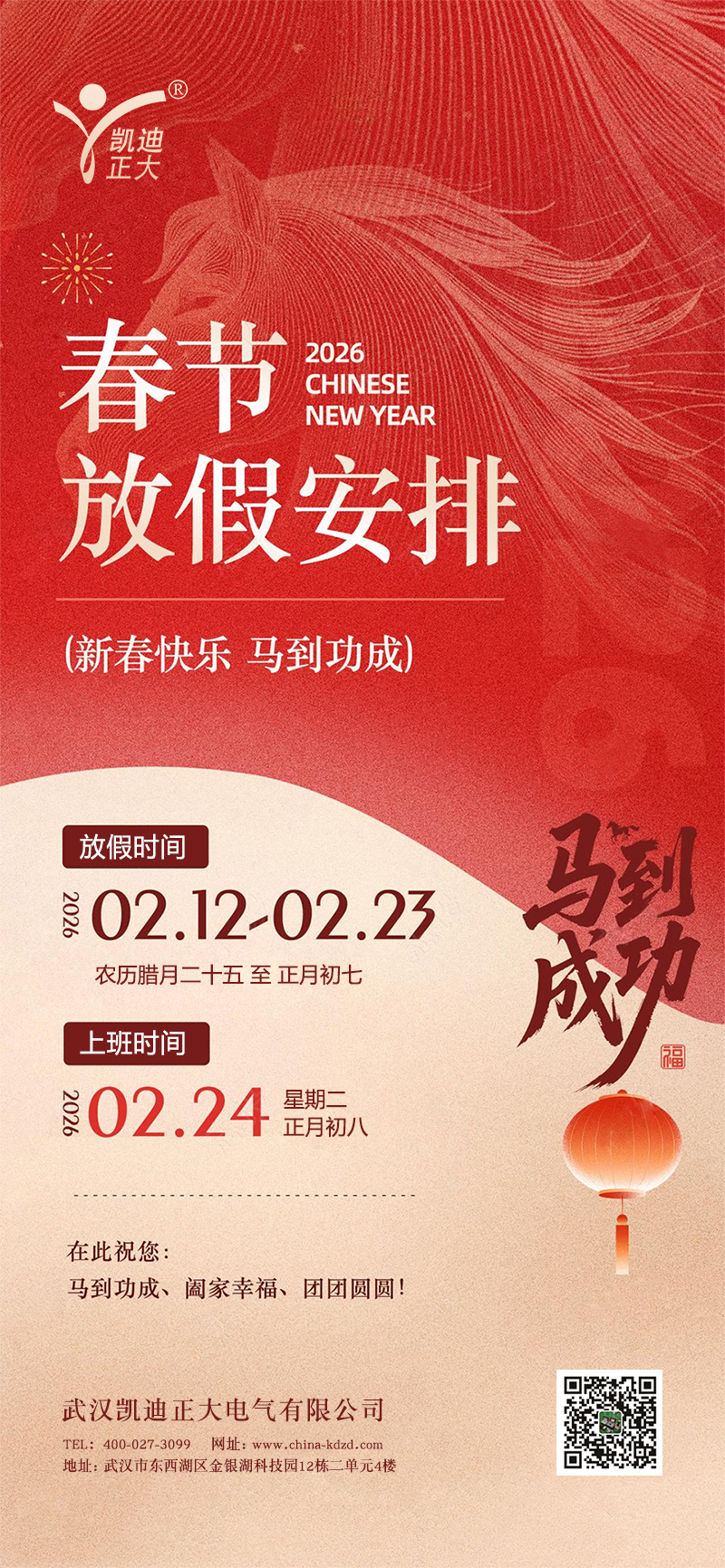 武漢凱迪正大2026年春節放假安排的通知